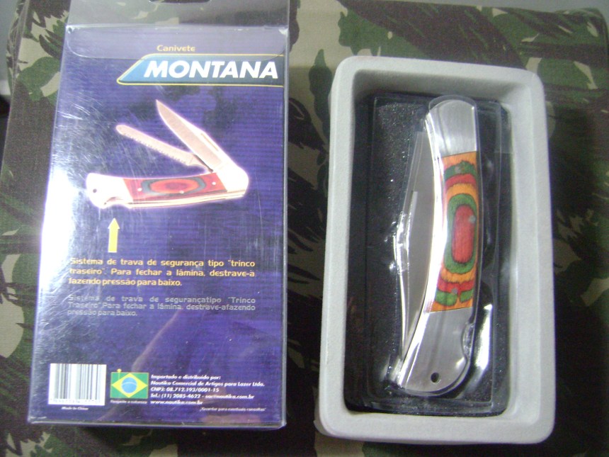Sua caixa é simples, porém já protege o produto com eficácia. Ao abrir ela você encontra o canivete assim: