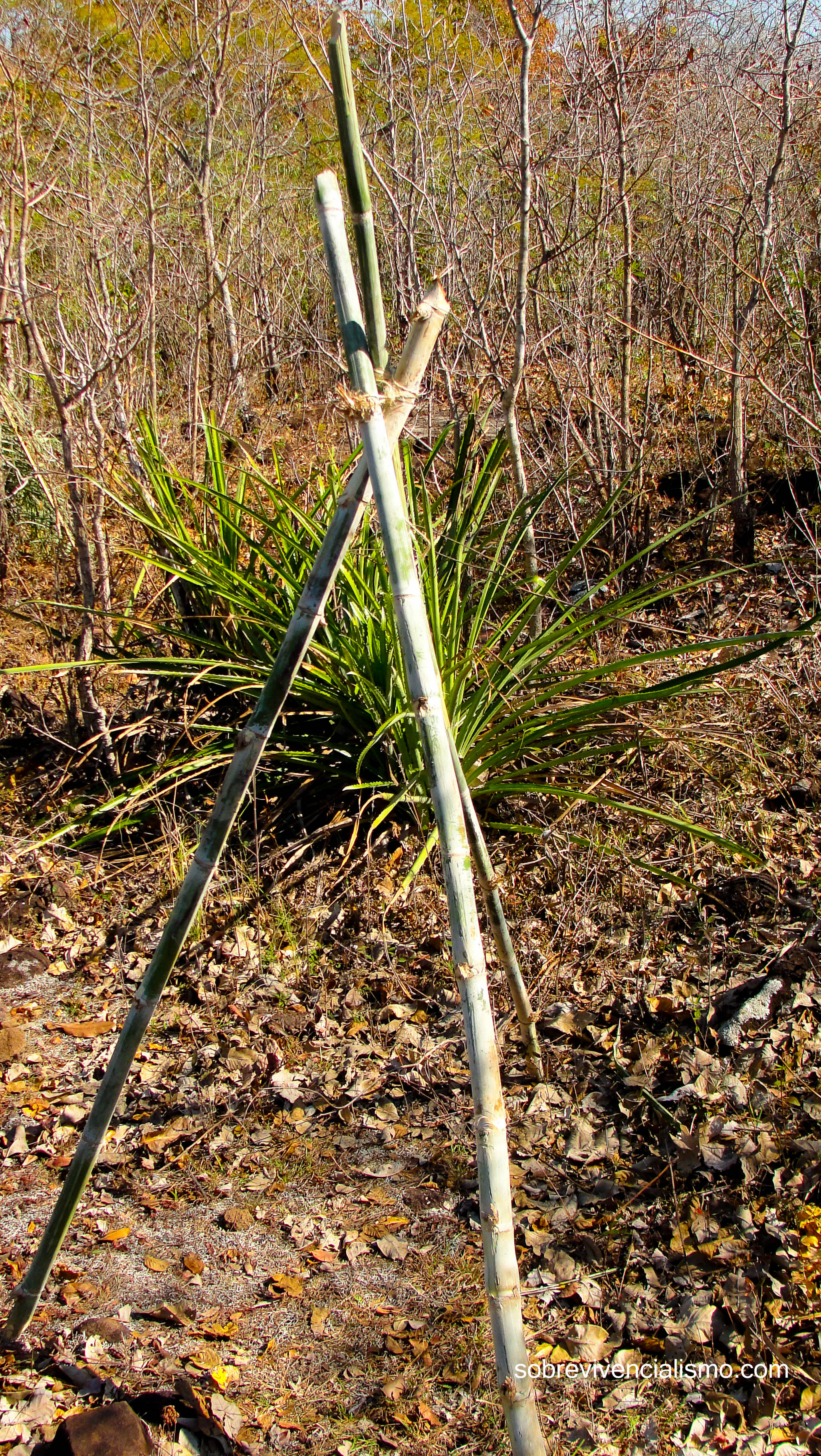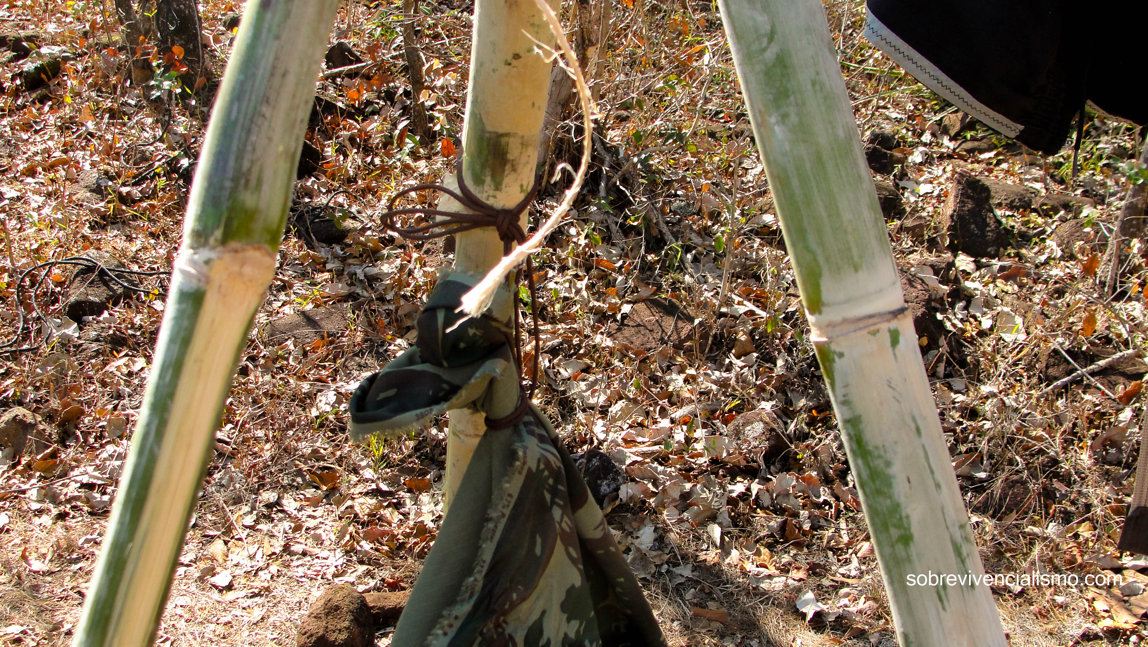 Tripé feito de “taboca” com amarra de cisal.