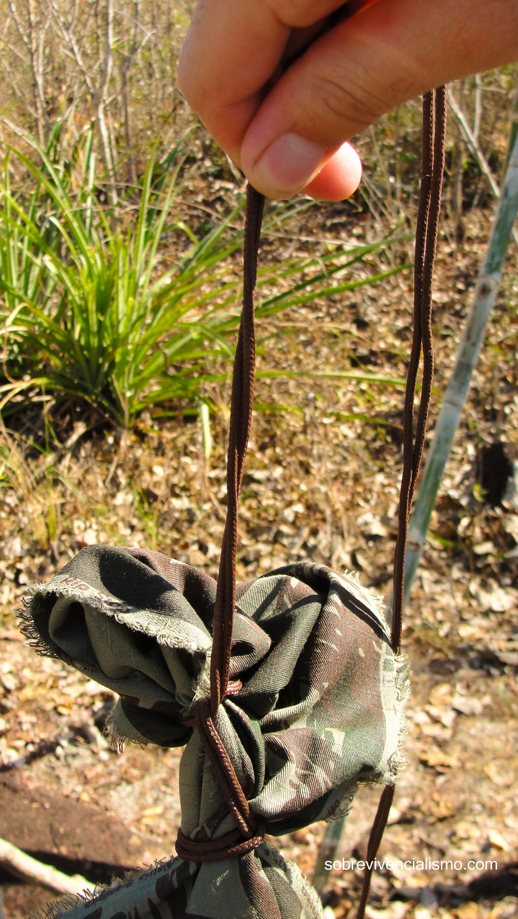 • 3 pedaços de cordame, paracord, driça, cipó ou que a necessidade falar mais alto.