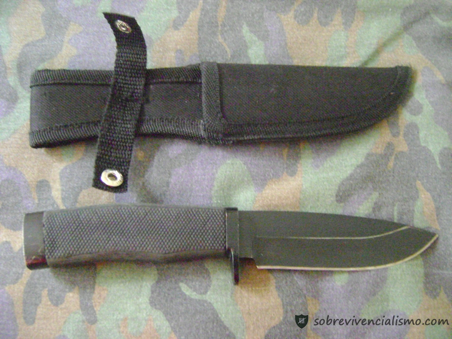 A bainha confeccionada em nylon com um protetor interno para a lâmina e possui passador de cinto e trava. Por experiência própria sugiro cuidado ao retirar essa faca da bainha, pois uma vez eu retirei muito rápido e de maneira imprudente que quando a faca saiu cortou meu dedo.