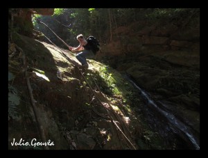 Julio Lobo desbravando a cachoeira do morro do Paxixi.