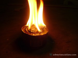 Outros métodos – Recentemente comprei por um bom preço uma espécie de fogareiro que consiste basicamente uma lata com Dietileno Glicol (combustível) e um pavio. Muito leve produz uma chama sem cor e sua combustão é suficiente para fazer a comida. Mantêm-se aceso durante 4 horas.