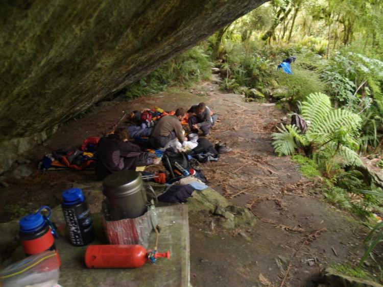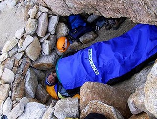 Bivaque em caverna: Nas montanhas achar uma caverna não é difícil. Um saco de dormir e um isolante térmico são indispensáveis. Uma lona para bloquear o vento pode ser necessária dependendo do local escolhido. Cuidado ao entrar em cavernas profundas. Verifique a presença de animais rasteiros nas paredes e no chão. Procure rastros de animais, ali pode ser a casa de algum bicho e procure não fazer fogueiras, pois a fumaça pode te intoxicar.