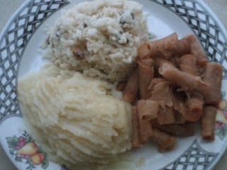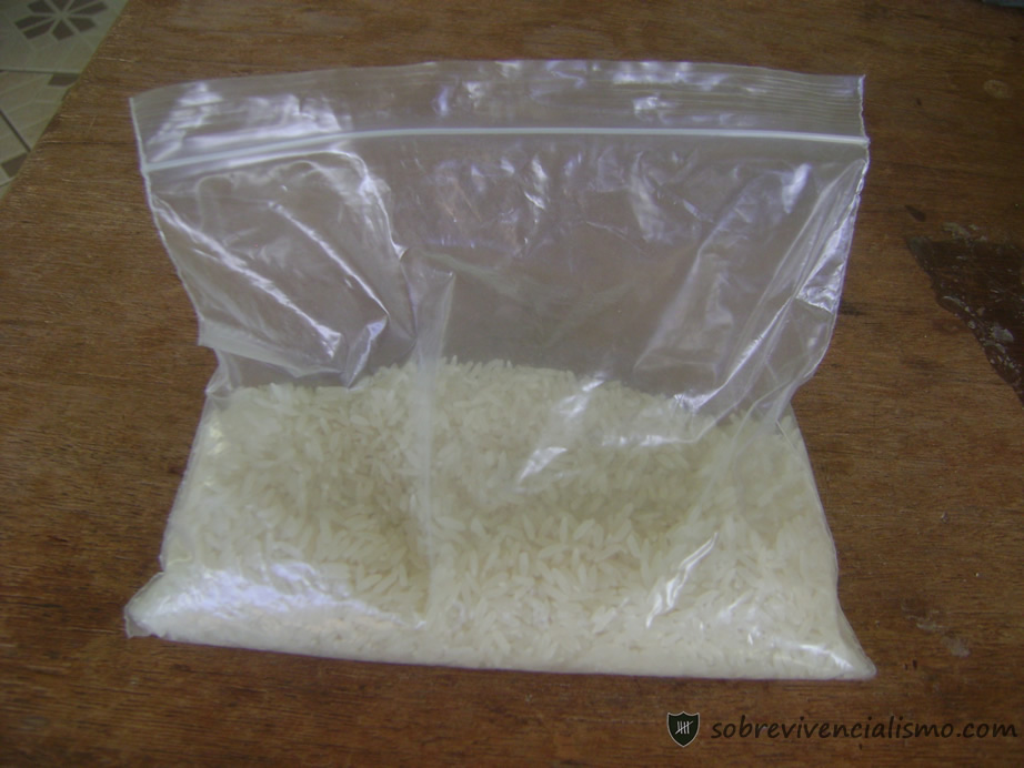 Arroz com lingüiça, bacon ou carne seca – O arroz é muito fácil para preparar. Uma dica para levar só o suficiente é medir o quanto você come e armazenar em um saco ziplock. A lingüiça calabresa, o bacon e a carne seca podem ser utilizado sem refrigeração. A carne seca ou charque exigem mais tempo de preparo pois é preciso retirar o excesso de sal fervendo-a de duas a três vezes (causando um gasto excessivo de água). O tempo de preparo varia de 30 min a 1 hr.