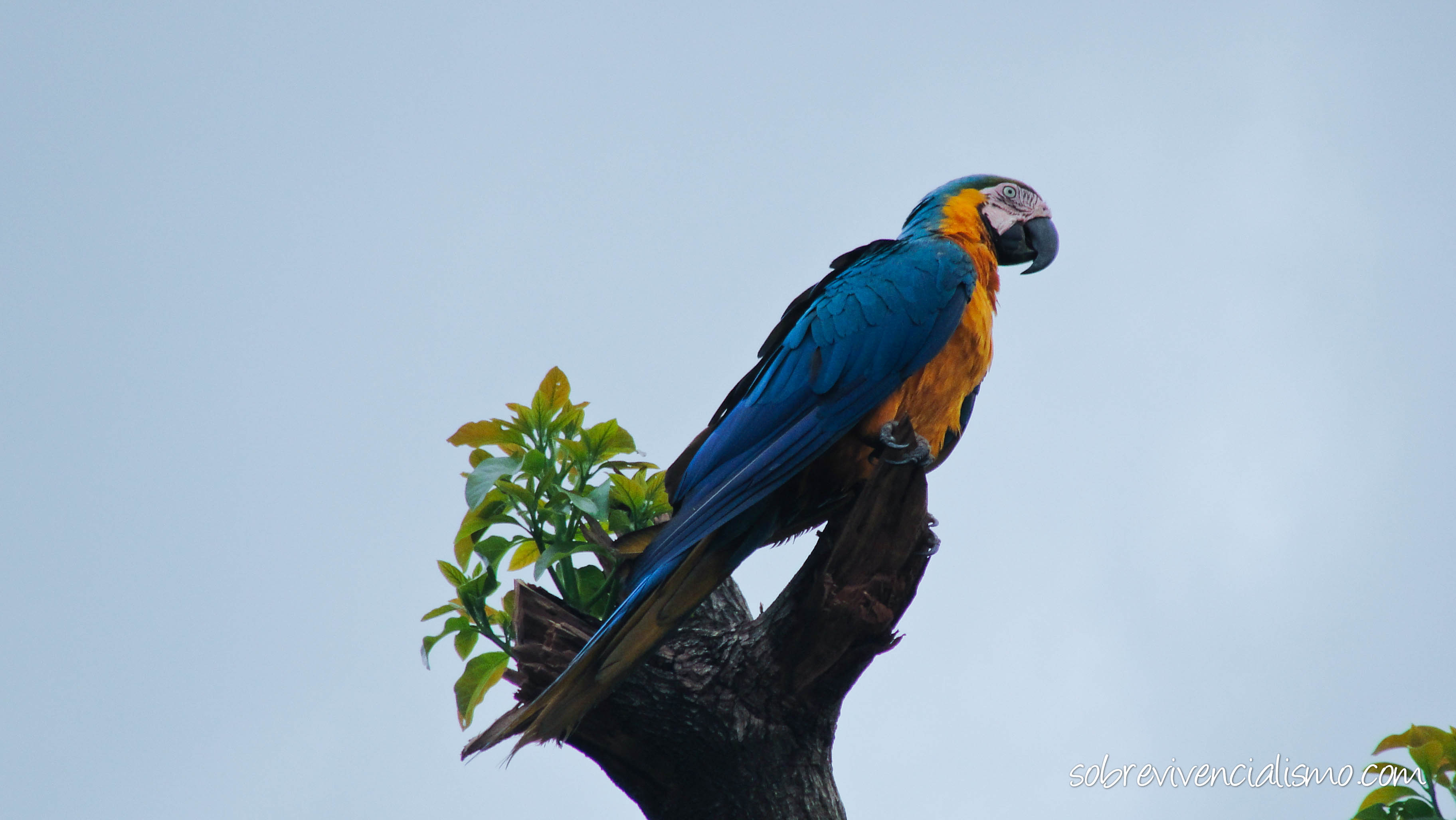 Com a caça e a destruição de seus habitats, se torna cada vez mais comun encontrarmos animais silvestres nas cidades. Foi o caso desta Arara, que é comum nos campos de Cerrado do Brasil. Sua aparição já se tornou constante em algumas cidades do Brasil, como em Campo Grande – MS.