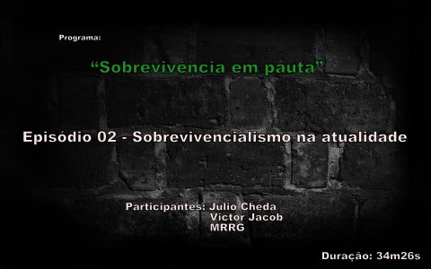 Parabéns aos responsaveis pelo blog, um ótimo trabalho vcs estão fazendo. Especialmente este 2º programa do sobevivencia em pauta. É muito instrutivo ouvir estas várias opiniões diferentes do que é o sobrevivencialismo , ou do que é ser um sobrevivencialista.