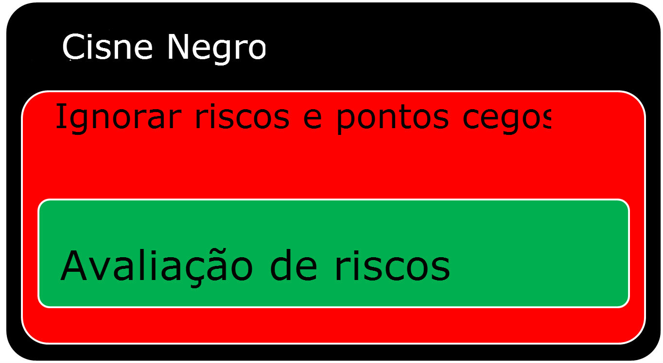 Há grandes acontecimentos que tem um impacto enorme que fogem de análise de qualquer pessoa. Estes grandes desvios de desenvolvimento “normal” são muitas vezes chamados de “Cisnes negros” por Nassim Nicholas Taleb que introduziu o conceito. Esses eventos podem ter efeitos desastrosos, como os ataques terroristas de 2001 9/11, mas também um efeito positivo, como a invenção da Internet. Existem riscos que você conhece mas ignora, mas também existem riscos potenciais que você não sabe que estão lá.