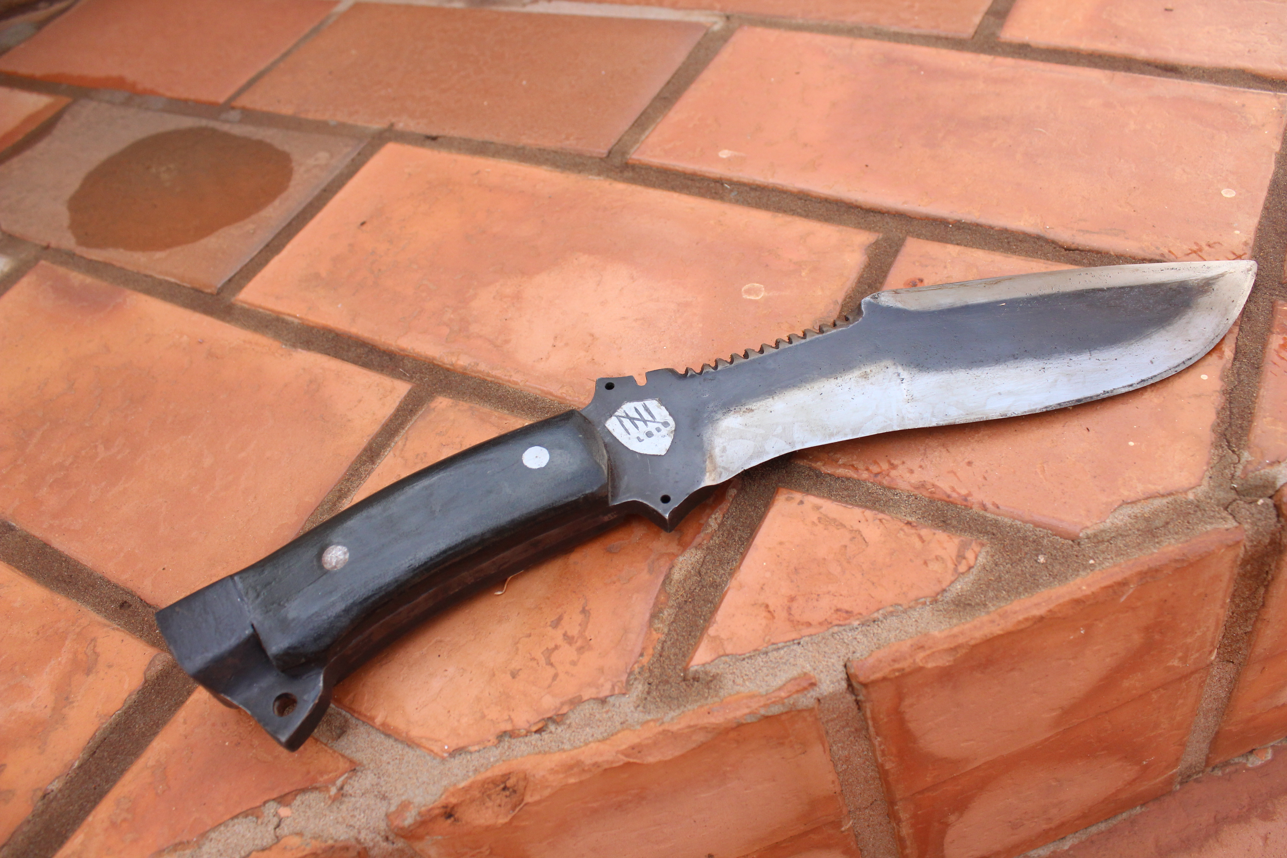 O produto final ficou realmente muito bacana, embora precise de pequenos ajustes que certamente tornariam a lâmina melhor do que ela já é, como por exemplo um cabo mais esculpido de forma a deixar a pega mais anatômica e confortável durante o uso e mais aderente, isso faz uma tremenda diferença, não vejo muita utilidade para uma serra neste tipo de lâmina, se bem que as vezes quebra um galho, literalmente, porem a serra precisa ser bem elaborada para que seja de fato eficiente.