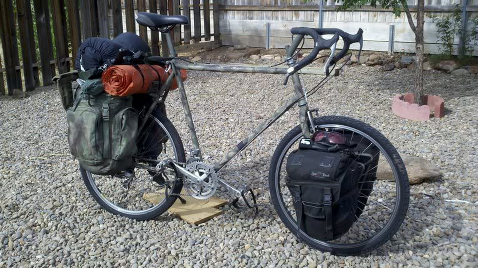 Esta bicicleta da foto por exemplo, ela parece bicicleta de quem está dando a volta ao mundo. É capaz de algum jornalista querer entrevistar o cara que estiver sobre ela.