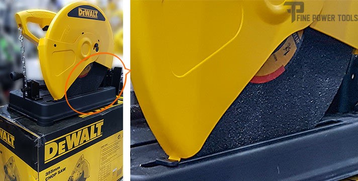 Como funciona: Um disco abrasivo que gira a uma rotação muito alta em um braço oscilante é alimentado na peça de trabalho que é mantida na mesa. Como você pode ver, o princípio de funcionamento de uma serra de policorte é semelhante a uma serra de esquadria. No entanto, a principal diferença entre os dois tipos de serras é que, em uma serra de policorte, um disco abrasivo é a ferramenta de corte, enquanto que no caso de uma serra de esquadria, a ferramenta de corte é uma lâmina de aço dentada.