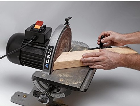 A lixadeira de disco estacionária de bancada possui uma placa traseira redonda na qual o disco abrasivo é fixado. A placa traseira circular é geralmente feita de aço ou alumínio e é fixada no motor de acionamento com um parafuso no centro. O diâmetro do disco pode estar entre 4 e 12 polegadas. Uma mesa de trabalho de altura ajustável que atuará como suporte da peça de trabalho é fixada na frente do disco. Você moverá a peça de trabalho ou a madeira contra o disco de lixa que gira em alta velocidade. Certifique-se de definir o espaço entre a mesa de trabalho e o disco abrasivo o mais próximo possível, para evitar que a peça fique presa no meio.