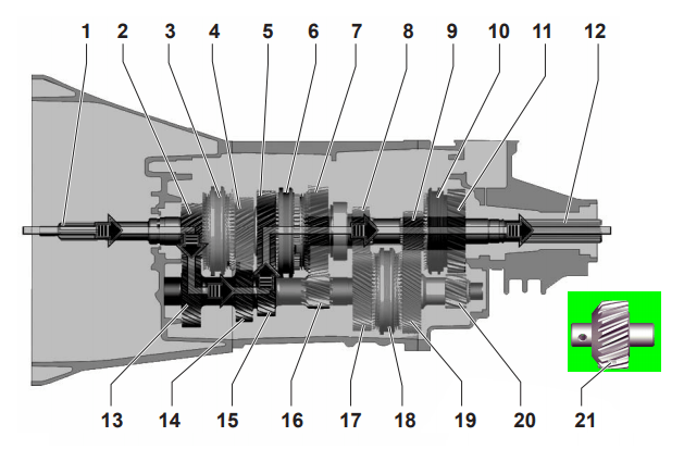 Até agora, o movimento iniciou com as explosões do motor dando início a rotação do eixo virabrequim, transferindo tal energia através do volante do motor onde é acoplado a embreagem, essa, que transmite o torque por um acoplamento no centro do disco de embreagem ao eixo piloto da caixa de marchas.