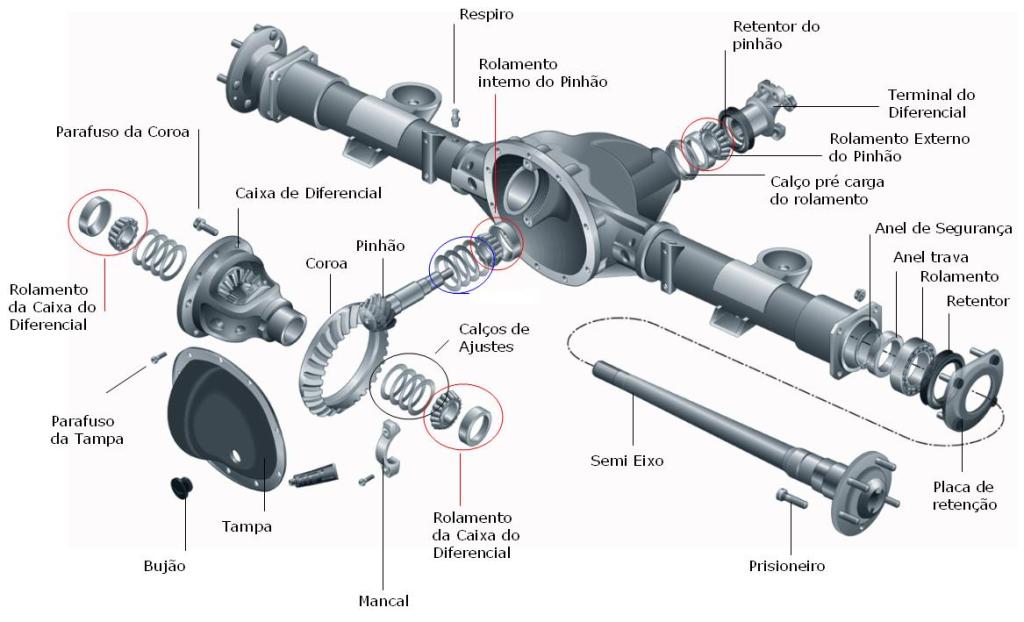 Isso é possível por um conjunto de engrenagens chamado caixa satélite que fica na parte interna da coroa e é responsável por entregar a rotação aos semieixos e até que enfim chegando às rodas e gerando a tração devido o atrito dos pneus com o solo.
