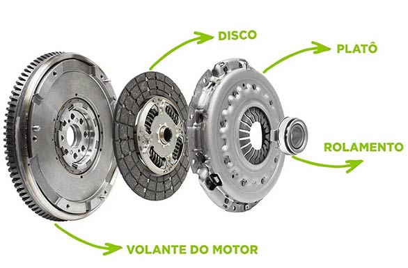 Logo em seguida na sequência de entrega de energia, encontramos a embreagem que é composta por uma peça de ferro chamada platô e um disco de algum material fibroso ou até mesmo cerâmico, algo próprio para gerar um atrito entre essas duas peças de ferro que são o volante do motor e platô de embreagem.
